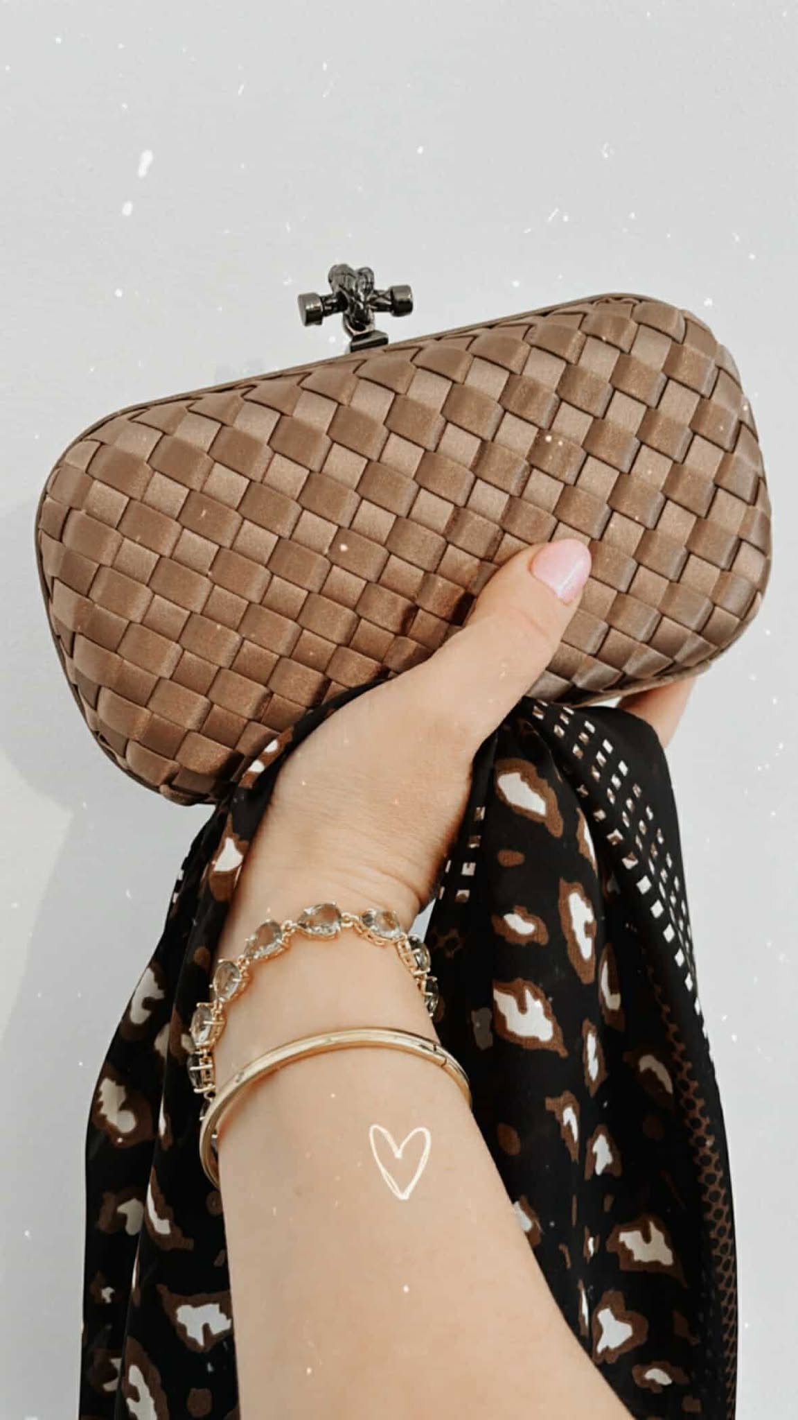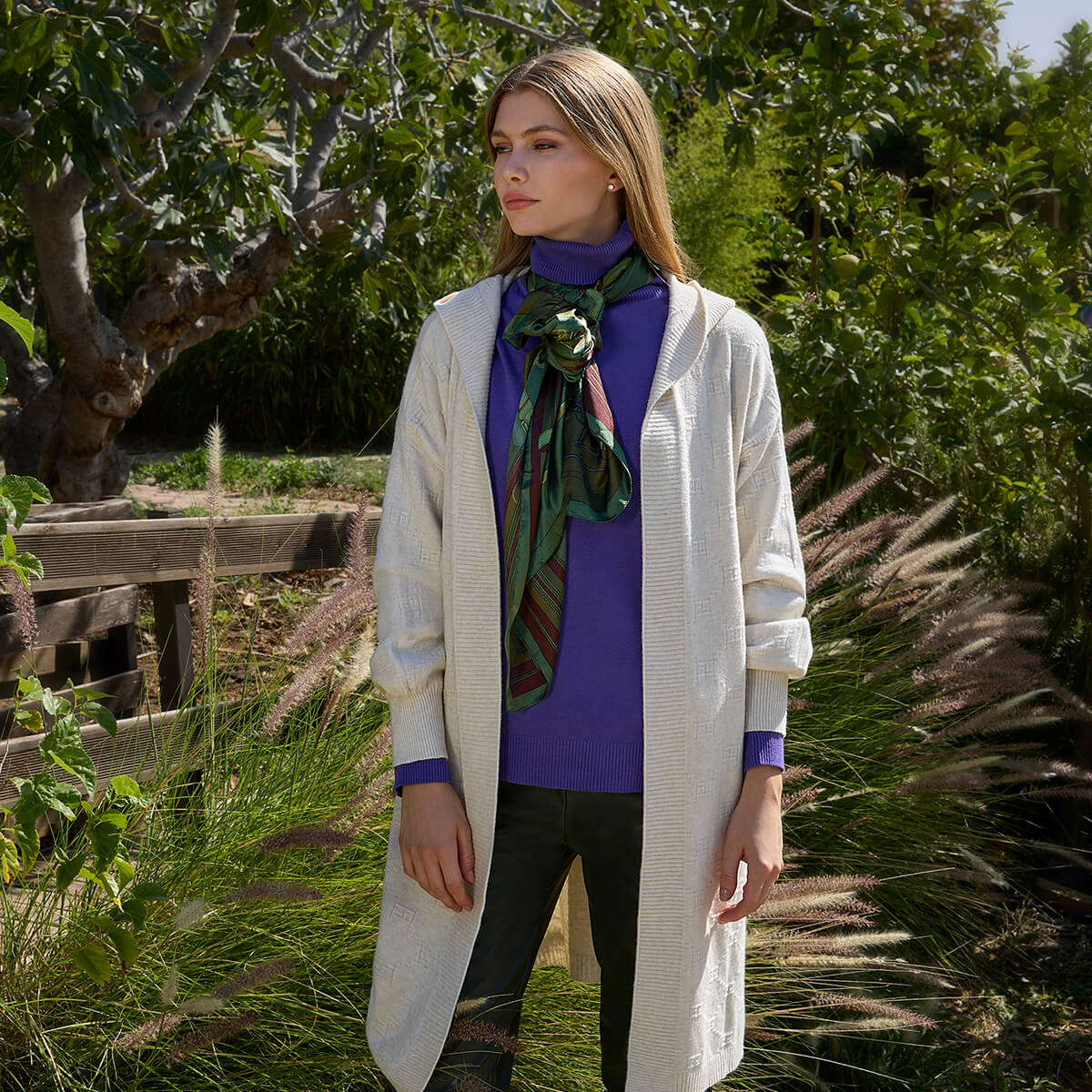 Μαντήλι τετράγωνο σε πράσινες και καφέ αποχρώσεις με σχέδια και σατέν υφή. Ιδιαίτερα κομψή επιλογή για τις εμφανίσεις σας.