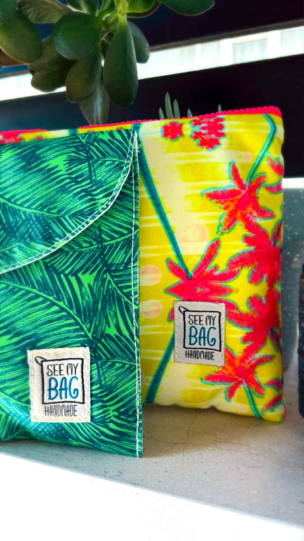 Χειροποιήτη τσάντα SEE MY BAG small pochette , wet bag.Αδιάβροχο εσωτερικό.