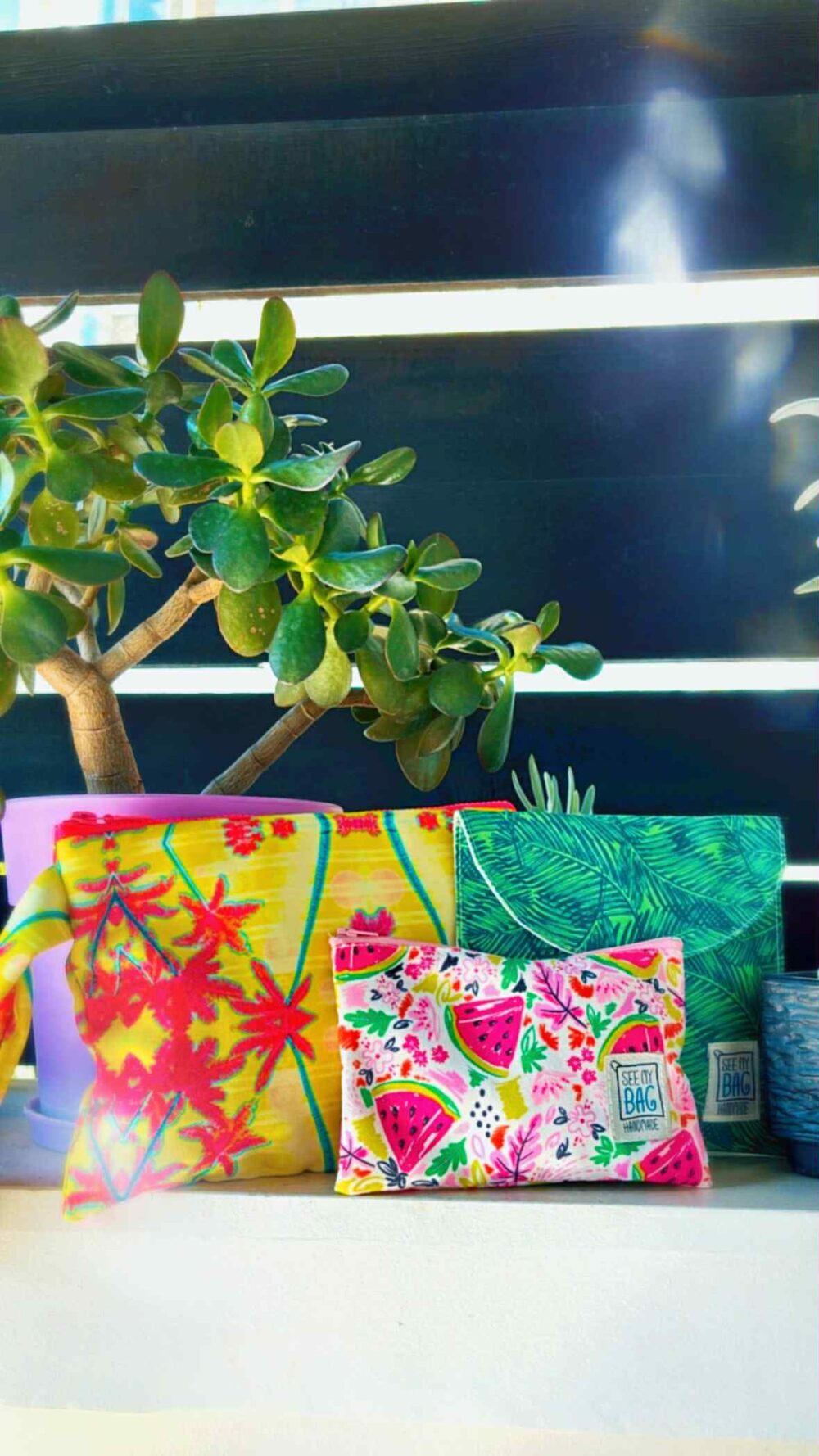 Χειροποιήτο τσαντάκι SEE MY BAG small pochette , water bag . Αδιάβροχο εσωτερικό.