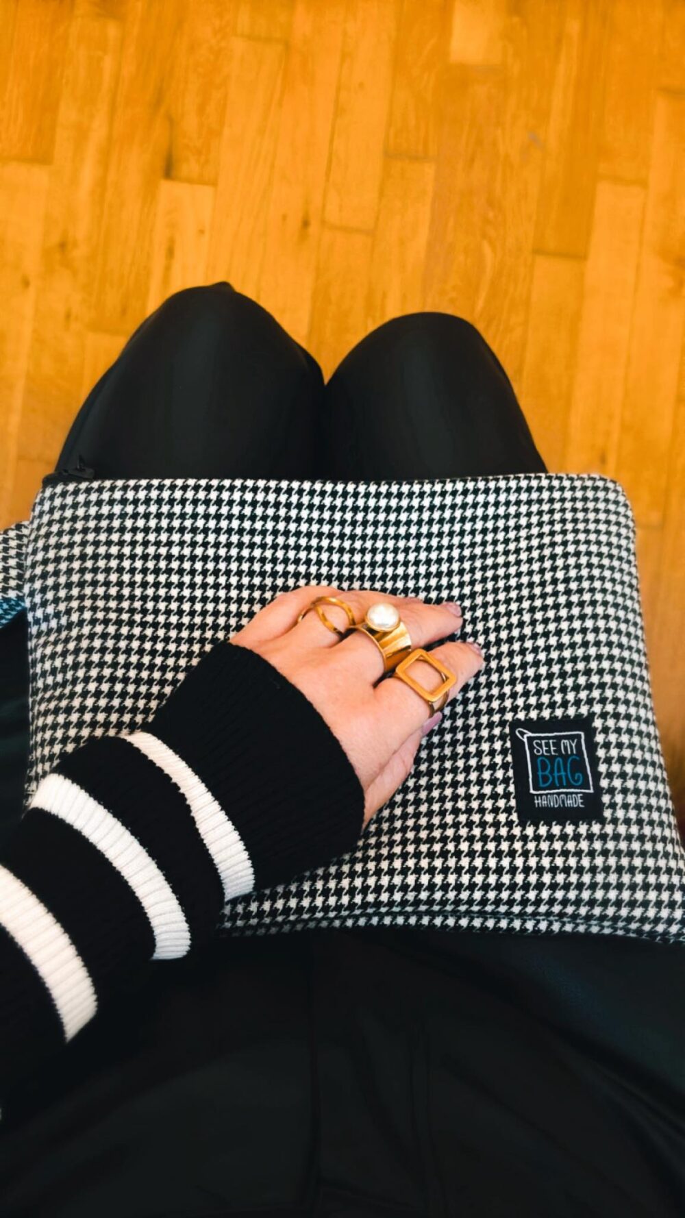 Χειροποιήτο τσαντάκι SEE MY BAG small pochette , wet bag. Αδιάβροχο εσωτερικό.