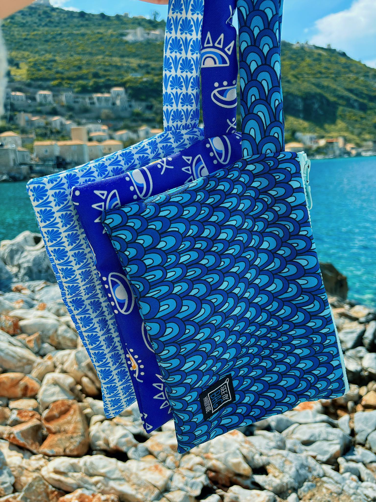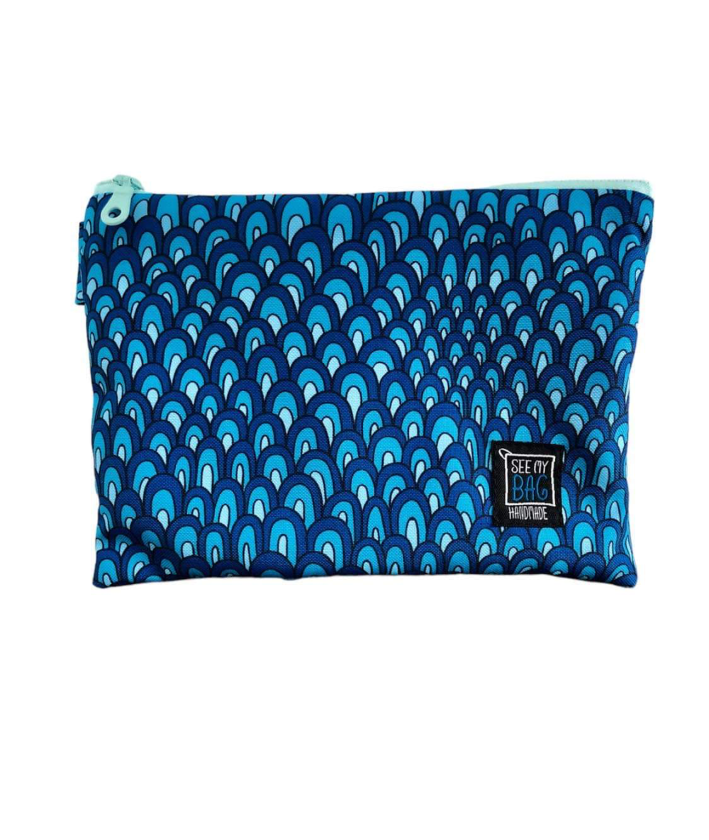 Χειροποιήτο τσαντάκι SEE MY BAG small pochette , wet bag. Αδιάβροχο εσωτερικό.