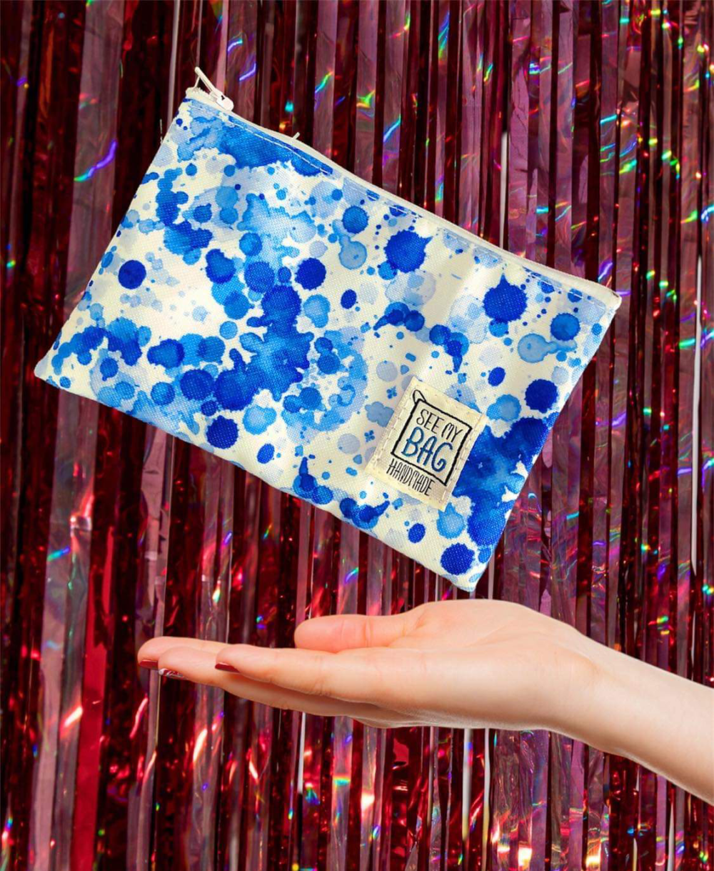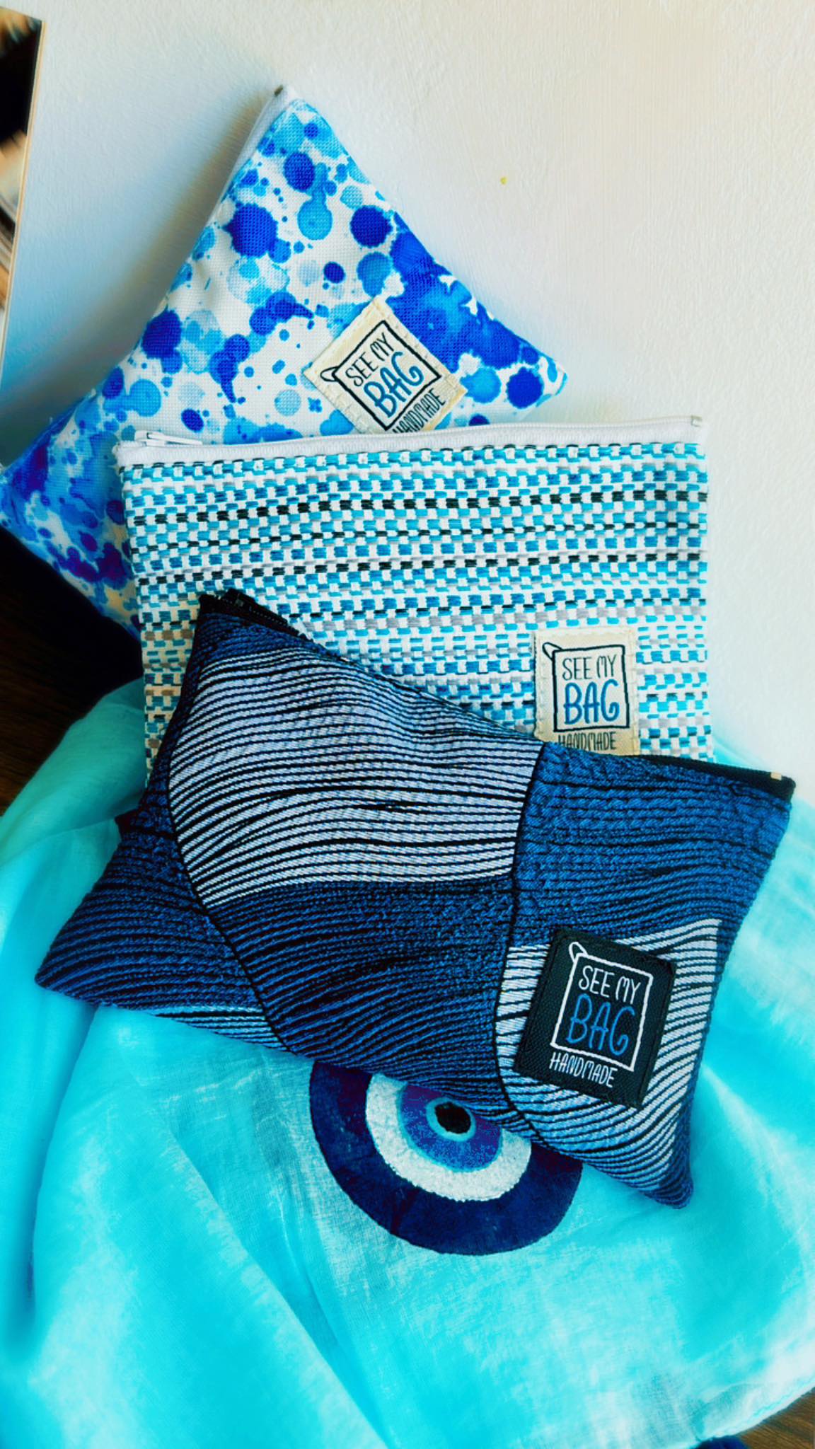 Χειροποιήτο τσαντάκι SEE MY BAG small pochette, wet bag. Αδιάβροχο εσωτερικό.